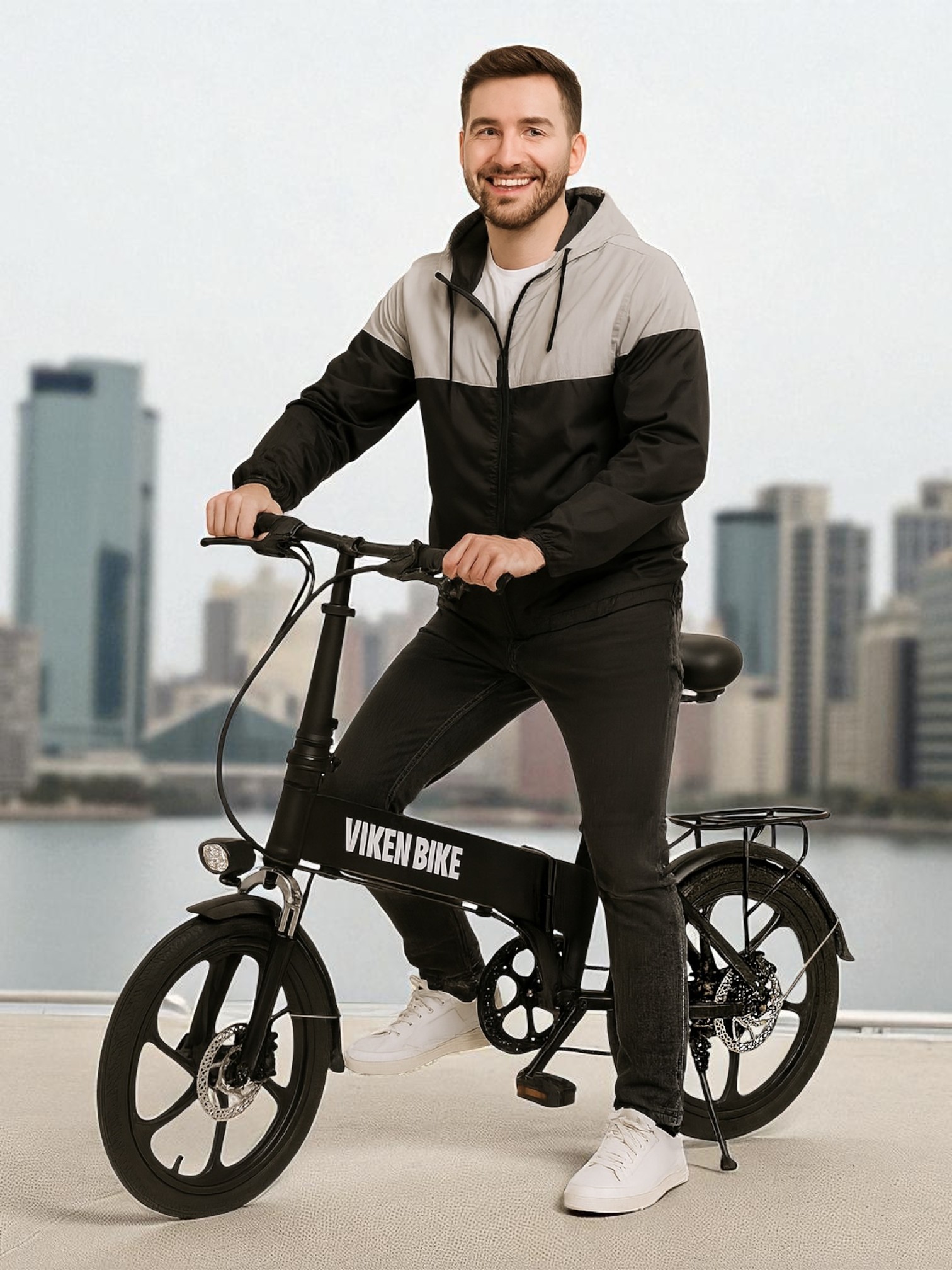 La Viken Bike es la combinación perfecta entre comodidad, diseño y tecnología. Con su cuadro de aluminio plegable, un motor trasero de 350W, y batería extraíble de 36V 7,8 Ah, te ofrece hasta 40 km de autonomía con una sola carga.