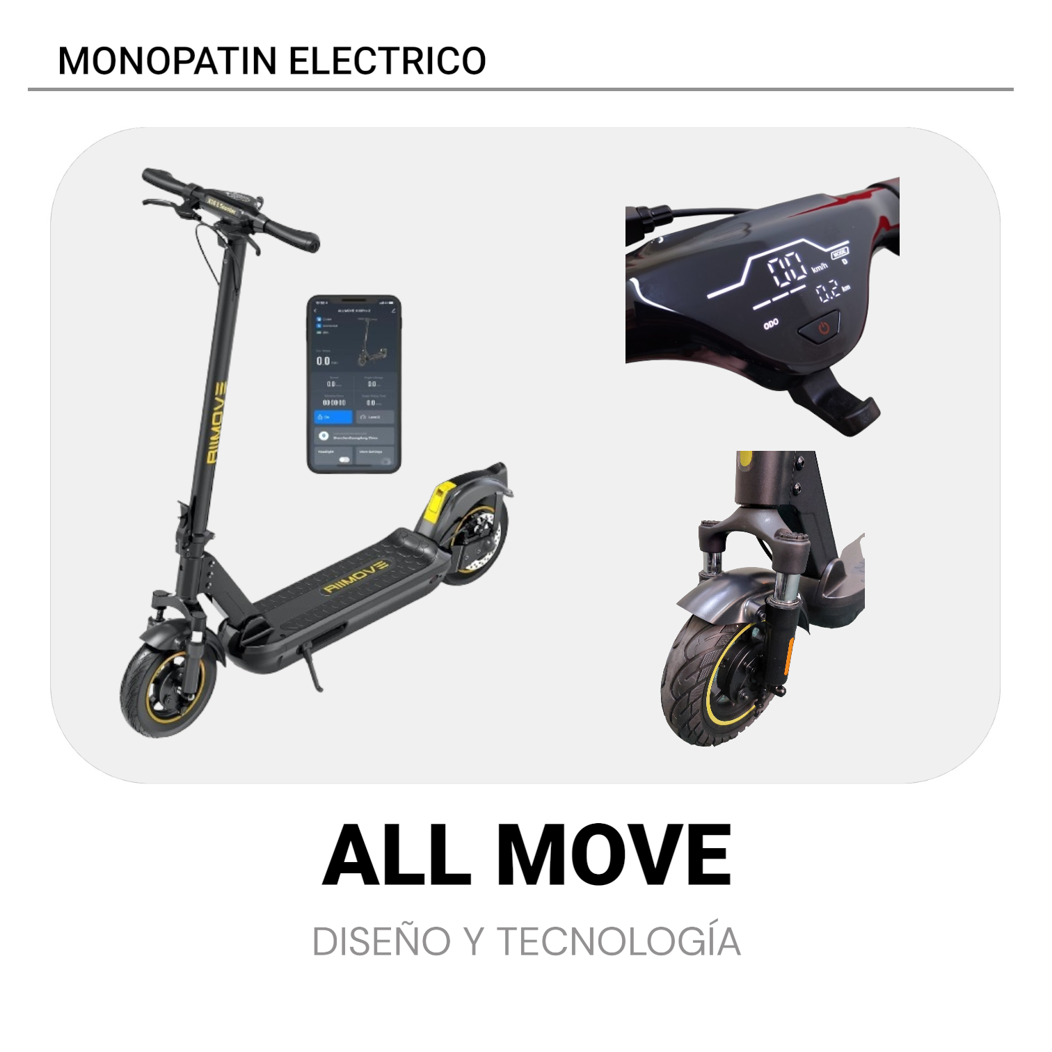 El monopatín eléctrico ALL MOVE tiene un display para los mas demandantes de tecnología, una estructura reforzada con ruedas maciza de 10 pulgadas no requieren mantenimiento y su sistema de suspensión doble en la parte delantera y trasera brinda una experiencia única en su andar.